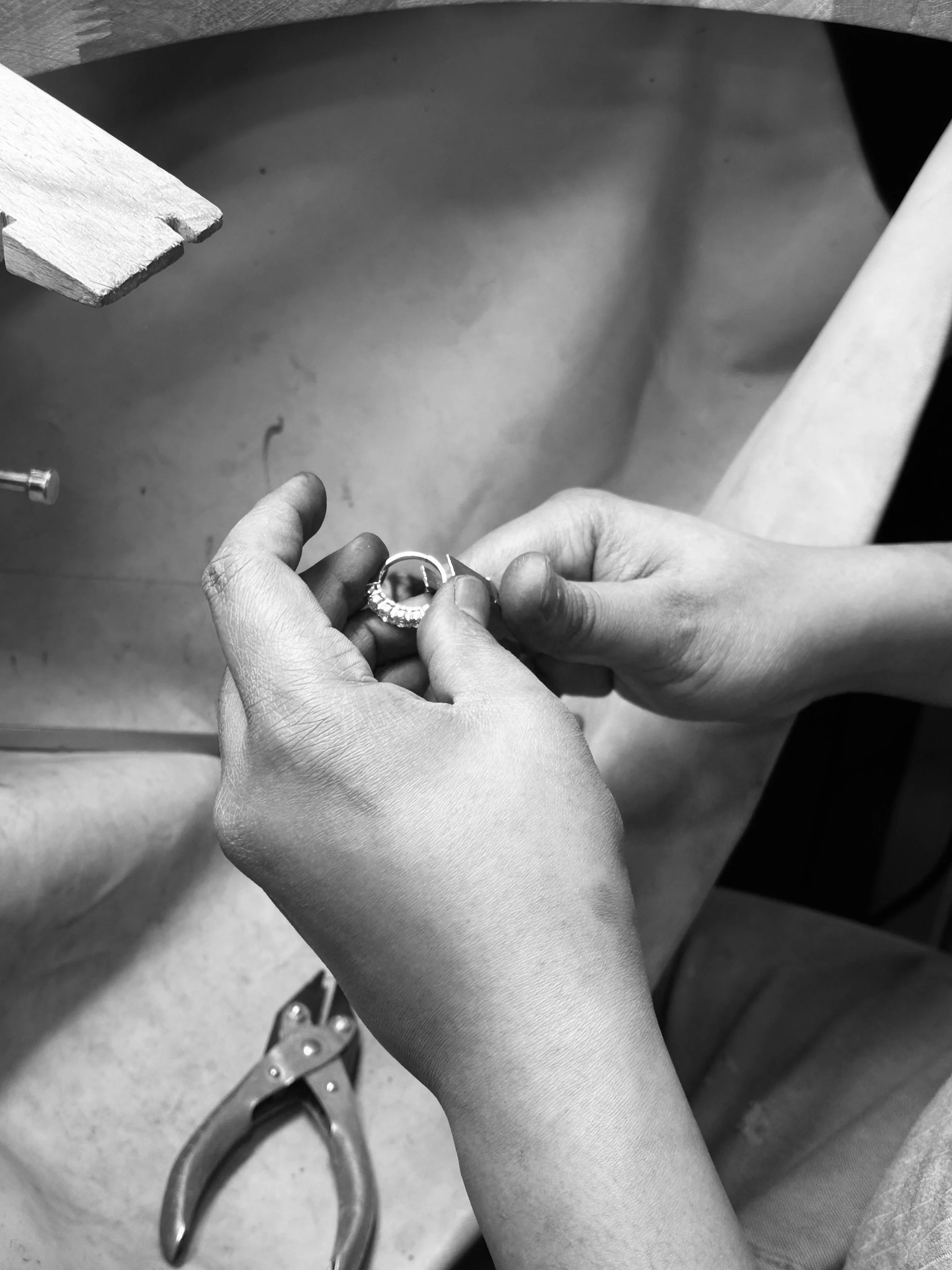 Our skilled goldsmiths combine traditional techniques with modern tools to ensure every item is not only beautiful but also durable. From initial design to final assembly, each piece is crafted with precision and care, resulting in exceptional jewellery that stands the test of time.